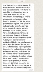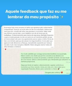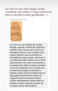 Foi quando decidi voltar a estudar finanças, isso em 2020, durante a pandemia. Recomecei os estudos com cursos online em finanças e fui ficando cada vez mais envolvida e apaixonada pela transformação que a educação financeira pode trazer.