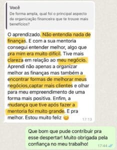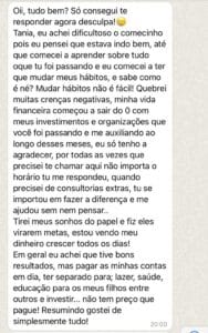 Comecei a implantar em minha vida uma nova visão sobre o dinheiro e não parei mais. Continuei cada vez mais envolvida com este tema e então surgiu uma oportunidade de um novo projeto junto aos nossos clientes empreendedores do coworking para que eu pudesse ajuda-los mais na gestão financeira dos negócios, e então aprofundei mais ainda meus estudos e minha formação como educadora financeira.