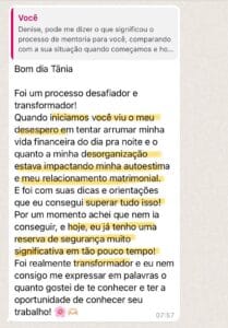 ✅ Sessão 5 – Introdução aos investimentos – reserva de segurança: A grande maioria das pessoas que procuram a mentoria espera por esta sessão com muita ansiedade, mas o que eu sempre digo é que tudo isso é um processo que precisa ser muito bem alicerçado para chegar ao topo. Não adianta querer cortar caminho, você somente conseguirá aprender a investir depois que tiver cumprido todos os passos da jornada de reorganização financeira que iremos trilhar juntos durante os 3 meses. Quando você chegar nesta sessão, tudo estará mais claro e você terá condições de entender como fazer o dinheiro trabalhar e ser comandado por você e não o contrário. Iremos fazer a sua introdução ao mundo dos investimentos, iniciando a construção da sua reserva de segurança na renda fixa.